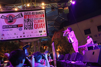 国際会議終了後は、シンガポールの中心地でもあるClark Quayでのメインステージライブに出演、Green Roomでの取材、シンガポールで一番人気の最大規模のクラブ「THE ARENA」でライブを行なった。広い会場には、現地のKREVAファンやはもちろん、一目KREVAを見てみたいというオーディエンスで埋め尽くされ、40分のパフォーマンスを繰り広げた。