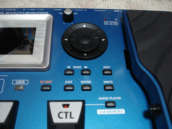 試奏してのお気に入りはRHYTHM 6-1の[AcGt12st+STRINGS]。きらびやかな12弦ギターのモデリングと2種類のストリングスがミックスされた音だ。これでエアロスミスの「ドリーム・オン」のイントロなどを弾こうものなら、もう胸がドキドキワクワクで、あまりの甘美さにメロメロになってしまう(擬音ばっかりだ)。またLEAD 1-2[Rock Lead Organ]はハモンド系のオルガンサウンドにシンセ音をミックスしたもの。思わずディープ・パープルの「チャイルド・イン・タイム」を弾きたくなる音だ。またヘヴィなサウンドもたっぷりで、RHYTHM 10-1[Heavy Gt W/Sweep]は、ハイゲインなギターモデリングにシンセブラス、シンセパッド・ストリングスをミックスした音色で、強烈な歪みと迫力だ。これらの音色のセレクトも実に簡単。矢印キーでバンクを選びパッチを次々に変えていくだけ。もちろん本体パネル上のフットスイッチでもできるので、これはライヴでも使いやすい。