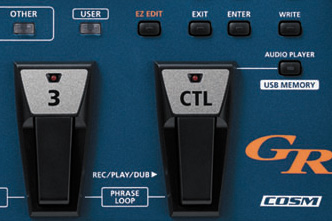 一人でステージに立ち、サウンド・オン・サウンドで音を重ねていくパフォーマンスは、絶対に目立つ! GR-55は最大20秒までの演奏を録音し繰り返して再生することができる。まずフットスイッチ[3]と[CTL]を同時に踏んでから、[CTL]を踏めば録音、再度[CTL]を踏めば繰り返し再生だ。これを続ければオーバーダビングしていくことができる。この機能は最近のローランドおよびBOSSマシンのトレンド。観客のド肝を抜くには最高のパフォーマンスだ。ぜひマスターしてライヴで活用したい。