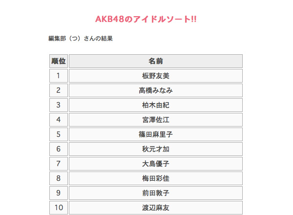 ◆新規ファン獲得のカギはやはり板野友美か? AKB48メンバーのネットクチコミランキング