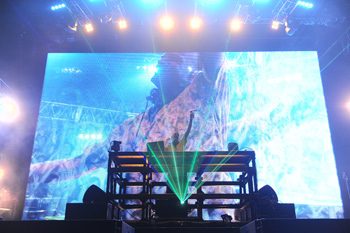 今回は彼の提案で「EYE PHONE」プロジェクトが実施された。これはファットボーイ・スリムのDJプレイ中に彼のマッシュアップ曲「Bad Davis Saved My Life」のメロディが聴こえてきたら、会場のみんながiPhoneなど事前にケータイにダウンロードしておいた「EYEアニメーション」をステージに向って空高く一斉に掲げるもので、ノーマンらしい遊び心溢れた楽しい企画に会場のオーディエンスにも笑顔が溢れていた。