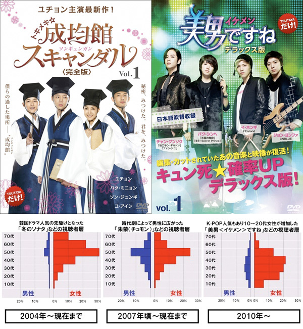 ◆韓国テレビドラマの年代別視聴者層の推移、『トキメキ☆成均館スキャンダル』『美男<イケメン>ですね』画像