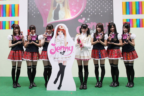 2011年4月の1stシングル「がんばって 青春」で、同年25周年を迎えるファッションドール「ジェニー」との衣装コラボを行なったSUPER☆GiRLS。今回<東京おもちゃショー>のステージでは、ジェニーとSUPER☆GiRLSとの、また新たなコラボが発表された。