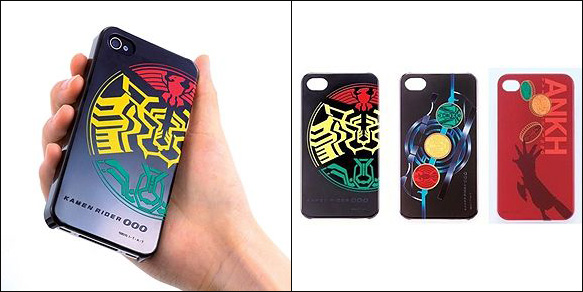 ▲「iPhone4対応 ハードジャケット 仮面ライダーオーズ」。デザインラインアップ(右)左から「タトバコンボVer.」「オーズドライバーVer.」「アンクVer.」