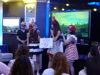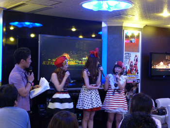 カラオケDAMの人気企画「お宝ランキングバトル」にて、「あやまんジェットコースター(あやまんJAPANと盛り上がろう!バージョン)と「ぽいぽいぽいぽぽいぽいぽぴー(あやまんJAPANと盛り上がろう!バージョン)を歌った人の中から抽選で選ばれたラッキーなファンが集うパーティールーム……。あやまんJAPANとの“試合”にワクワク感が充満している開場に響いた第一声は、“みんなイク時は、一緒だよーっ! そしてもちろん、ぽいぽいぽいぽぽいぽいぽぴー!”。「ぽいぽいぽいぽぽいぽいぽぴー」に乗って登場するやいなや、目の前の男子にはやくも密着、女子にも密着……。あやまんJAPAN流のスキンシップは、男女の見境なし(笑)。