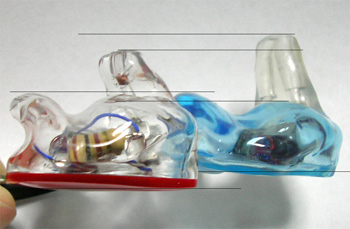 ▲このキモイのが耳型(インプレッション)。シリコンを耳穴に流し込み5分程度で硬化させ型をとる。一般的に補聴器を取り扱う店舗で採取する。