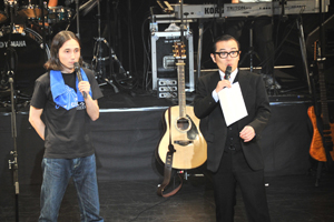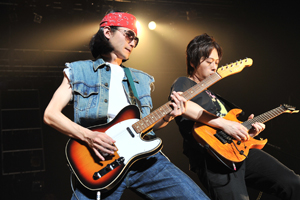 2組目は、このフェスの常連“浜田伸吾”。赤いバンダナ、ティアドロップのグラサン、袖を切ったジージャンという正装で登場した浜伸(はましん)が1曲目に演ったのは“浜田省吾”の「MONEY」。なぜここでコピーを?などという無粋な勘ぐりをする間もなく、東京公演では思わず「NEW STYLE WAR」と間違えそうになる「ドライブ」を、大阪公演では「I am a mother」で会場を浜伸ワールドに染めた。