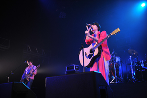 続いて登場したのは、ダブルのライダース姿がそっくり…もとい似合いすぎの“緑心ブラザーズ”の“YO-SHING”。一聴すると曲タイトルの頭になぜだか「拝啓」とつけたくなってしまう「自信があるんです」と、彼の代表曲「私の恋愛」の2曲で観客を魅了しステージを後にした。