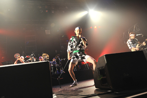 3年連続、計4公演行なってからの衝撃(?)の事実を発表すると、客席からは「え~!?」というお約束のレスポンス。オチもきれいに決まった後、アンコールとしてGOING UNDER GROUNDとコラボした新曲「また明日」、「笑って俺についてこい」の2曲を演奏した。