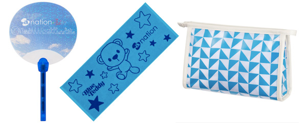 今回、<a-nation>のグッズは、“a-nation”のロゴを使用した「光るうちわ」、「マフラータオル」などの『a-nationオフィシャルグッズ』。そして、キュートなブルーテディをモチーフにした、「フロートペン」、「フェイスタオル」などの『ブルーテディシリーズ』。さらに2011年流行の幾何学模様や、ギンガムチェック柄を取り入れた『ライフスタイルシリーズ』の大きく3つのシリーズ別に分類される。オフィシャルグッズで一体感を出すか、ブルーテディで可愛く行くか、実用性のライフスタイルか。これだけでも迷うところだ。
