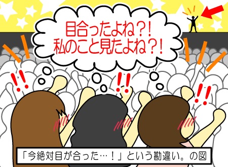 「(ステージ上の出演者と)今、絶対目が合った…!」という勘違い。(23歳 / 女性)