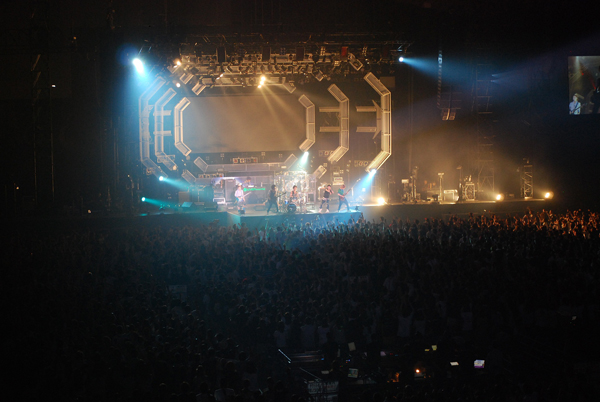 前日のライヴでも燃え尽きんばかりの勢いを見せたUVERworldだったが、「気持ちいいんだよ、うれしいんだよ。こうやってライヴできることが」と叫ぶTAKUYA∞に、バンドのボルテージが序盤から最高地点にたどり着くと、代々木第一体育館を埋め尽くした12,000人の観客は追い越さんばかりの勢いでそれに呼応していく。