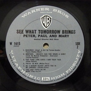 はUSオリジナル盤で、特に1stと5thはMONO盤を運良く手に入れることができました。そして今回、PPMの作品の中でも屈指の名盤である1965年の6th『SEE WHAT TOMORROW BRINGS』のUSオリジナルMONO盤をついに手に入れたのです。