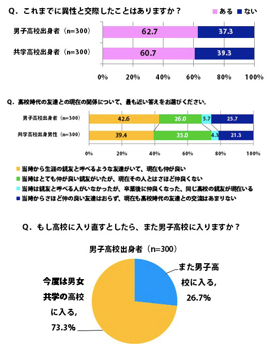対象者:18~29歳 男子高校出身者300名、共学高校出身男性300名、女子高校出身者200名