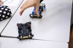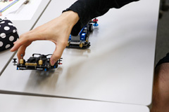 逹瑯:好きみたい。こういう細かいこと。ほら、ここね、重りを付けてあるからジャンプしても跳ねないんだよ(机の上で何度も跳ねさせて見せる)。