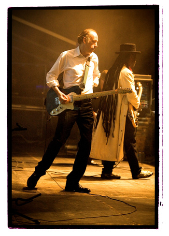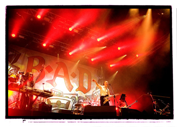 ザ・クラッシュのミック・ジョーンズとザ・クラッシュのビデオクリップや様々な映像作品を手掛けてきたドン・レッツを中心として1984年結成されたビッグ・オーディオ・ダイナマイトは、2011年初頭オリジナル・メンバーで再結成し、3月からツアーで世界各国を回り、1993年以来18年ぶりとなる来日を<FUJI ROCK>で果たし、7月29日(金)素晴らしいライヴを見せた。ミック・ジョーンズがクラッシュを解雇された翌年の1984年、ドン・レッツ(Vo)、ダン・ドノヴァン(Key)、レオ・ウィリアムズ(B)、グレッグ・ロバーツ(Dr)で結成し、そのオリジナルメンバーでの再結成、そのメンバーでの来日公演ということで2011年のフジロックのメンツの中でもかなり楽しみにしてた人が多かったことだろう。