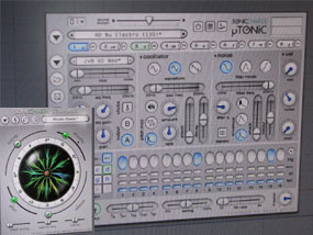 ▲クリプトン・フューチャー・メディアはTONE2、TOONTRACK、VIR2、VIENNAなど多くのメーカーの製品を用意。新製品では種から枝を育てるように音を作るSONIC CHARGEのユニークなシンセ「SYNPLANT」(画面左下)やアナログドラムマシン「MICROTONIC」(右)に注目。