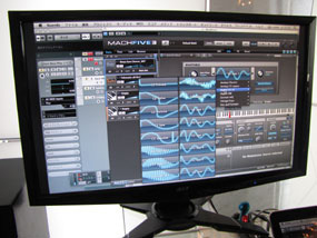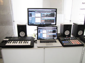 ▲ディリゲントは、Native Instrumentsからシンセ&エフェクトを多数バンドルしたKOMPLETE 7、パッド搭載のハードウェアコントローラーとソフトウェアによるまさにグルーブボックスライクななリズム作成ツールMASCHINEを展示。