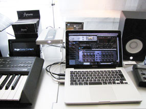 ▲フックアップは、Celemonyのピッチ&タイミング補正ツールMelodyneやArturiaのソフトウェアシンセ、PSPのエフェクトプラグインなどを展示。DSPによりCPUに負荷知らずでプラグインを利用できるUniversal AudioのUAD-2シリーズからはMacBookで使えるUAD-2 SATTELITEを用意。