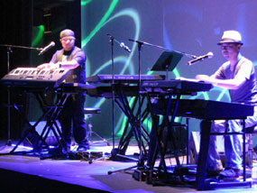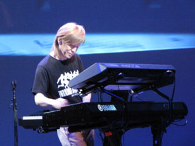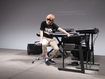 ▲MOTIF XF、MOX、CP1など4台のヤマハシンセを駆使、ペダルも多用のパフォーマンスで魅せる。