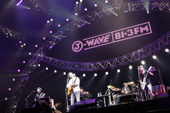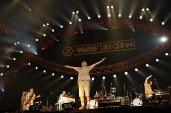 2日目のトリを飾ったのは、平井堅とともに12回連続出場のスガ シカオ。「午後のパレード」からのアッパーなスタートで会場も最高潮にヒートアップ。2曲目の「正義の味方」からはホーンセクションも入り、さらに華やかなステージが展開。途中「Eighty-one point three~」とJ-WAVEのジングルを会場に歌いかけ会場から「J-WAVE~」とレスポンスする場面も。MCでは、「東日本大震災があって、自分の言葉の重みを改めて感じました」と震災に触れ、Rakeと一緒にステージにあがった相馬高校の高校生とも交流をもったことを語っ。鳴りやまない歓声と拍手の中、アンコールの「コノユビトマレ」まで、10曲を熱唱。