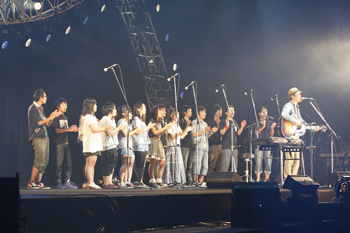2人目は清水翔太。ダンサーを従えて登場し「flower」を熱唱、ピアノ弾き語りで尾崎豊のカバー「forget-me-not」も披露した。「震災で何を発信すべきかわからなくなってしまったけど、音楽を作って、その音楽がみんなの心に寄り添っていけばいいという答えを出しました。そんな気持ちで作った曲」という「Song for you」のほか、ラストでは再び弾き語りで「君が好き」を披露しました。