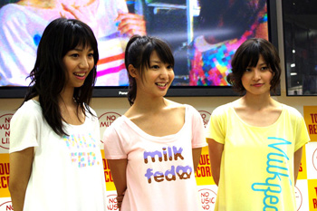 ミニライブはPUFFYのカバー「渚にまつわるエトセトラ」からスタート。3人のパフォーマンスに会場のファンも手拍子が鳴り響く。続いて2曲目「旅立ちトランスファー」を披露すると、WADAの「皆さん今日は会いたかったよー!」、YUIの「最後まで盛り上がって行きましょう!」のかけ声に、会場も大声援で応える。トマパイ初のカバー曲であるこの曲について、HINAが「(PUFFYの)「渚にまつわるエトセトラ」がリリースされた時は、私達はまだ小学生だったんですよ」と感慨深げに話した。