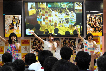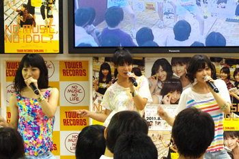 タワーレコード新宿店とアイドルとのコラボ企画「NO MUSIC, NO IDOL?」コラボポスター第4弾に登場しているTomato n’ Pineが、8月17日(水)にリリースとなった2ndシングル「なないろ☆ナミダ」の発売記念として、8月21日(日)にタワーレコード新宿店にてミニライブ&握手会が開催された。