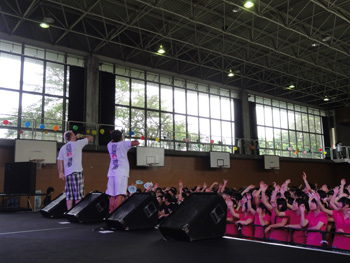 3日は東北学院榴ケ岡高等学校(仙台市泉区)のグラウンドに特設された野外ステージでパフォーマンスを披露。雨にも関わらず大勢の学生から大歓声の歓迎を受け、「あいにくの雨ではあったけれど、だからこそ逆にみんなの熱気をステージで感じることができた」と、逆境ゆえの心が通い合うライブとなった。