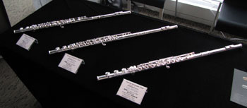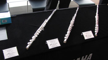 ▲銀製モデルの音孔引上げタイプ。左からYFL-817D(630,000円)、YFL-897D(703,500円)、YFL-897D(H足部管仕様、766,500円)