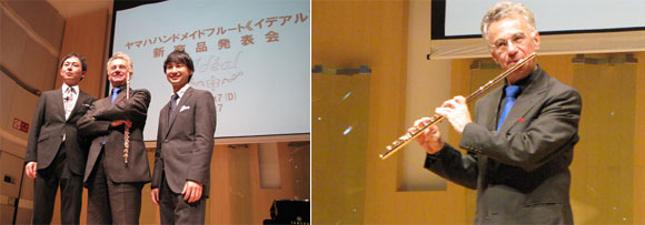 7月28日に行われた発表会には、ヤマハの開発者らとともに、アドバイザーのアンドラーシュ・アドリアン氏も登壇し、開発秘話などを明かした。ストロビンガーフルート社製のタンポ採用の理由については「安定性、ダイレクト、立ち上がりのよさ、気候・湿度の変化に対する安定性の高さから」とコメント。仕上がったフルートについては、「多くの人が満足してくれるようなものに仕上がっている」とし、それを裏付けるようなすばらしい演奏も聞かせてくれた。