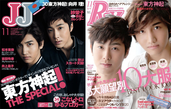 9月28日にニューアルバム『TONE』のリリースを控えている東方神起が、女性ファッション誌『JJ』(光文社)と『Ray』(主婦の友社)の9月23日発売11月号でダブル表紙を飾ることが決定した。女性ファッション誌としては、タブーとされている“同モデル”の採用。この出来事は業界初の試みで、さらに、両雑誌の表紙で“男性二人組”が表紙を飾ることも初となる。