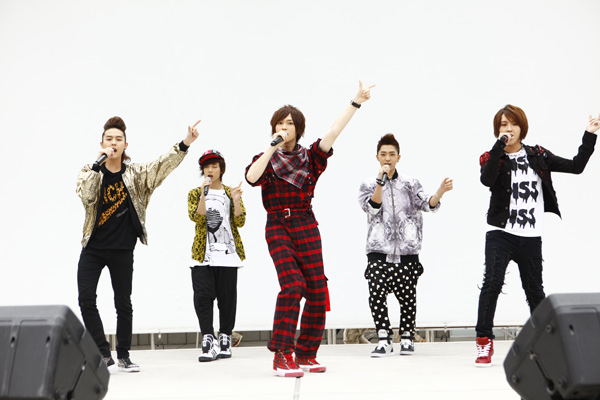 2回構成で行われたイベントでは、大国男児のメンバーが登場したと同時に会場に集まったファンのべ約12,000人が大歓声でお出迎え。デビューシングル「Love Power」、2ndシングル「Love Bingo!」、そして今回のシングルに収録されているカップリングの「Girlfriend」から表題曲の「Love Parade」とアップテンポな楽曲を披露し、会場を盛り上げた。