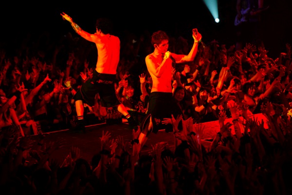 9月14日より、YFCのワールドツアー<WORLD TOUR“SHOW UR SOUL.I”世壊傷結愛魂祭>の一環として、ジャパンツアーをスタートしている彼らだが、この日は<~男女混欲美濡戯祭 其ノ弐~>と題された、2010年の<“煌☆雄兎狐塾~男女混欲美濡戯祭~”>の第2弾となる一夜限りのYFC流お祭りライヴを実施。もちろん前回に引き続き、来場者はスタッフも含めて全員“水着着用限定!!”という厳しいドレスコードが設けられ、会場はドレスコードをクリアしたファン約2400人で埋め尽くされた。