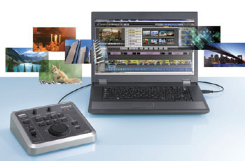 専用コントローラー「EC-1」の付属も大きなウリ。タイムラインの拡大・縮小が行えるタイムライン・ズームフェーダー、位置をフレーム単位でスムーズに移動できるジョグ・ダイヤルと早送り・巻き戻しができつシャトル・リングが一体となって装備され、直感的な作業が行える。外部マイクが接続きるほか、内蔵マイクも搭載。ナレーション録りがカンタンにできるのも大きな魅力だ。