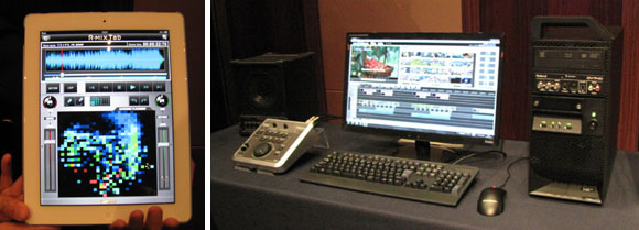 さらに発表会においては映像制作に活用できる技術として、同社が開発した「V-Remastering」技術を紹介、搭載ソフトウェアとして「R-MIX」についても言及された。「R-MIX」は、オーディオ信号を音の高さ、定位、音量に分解してグラフィカルに表示、音質を保ったまま任意の一部を抽出したり消去することができる「V-Remastering」技術と、音程と時間、フォルマントをリアルタイムにコントロールできる「VariPhrase」技術をベースとしたソフトウェア。収録映像の音声のノイズ除去、特定音の抜き出し、残響音の再調整などに活用できることがアピールされた。「R-MIX」は12月中旬発売、価格は20,000円前後を予定。iPad版もリリース予定(発売時期、価格未定)で、こちらは再生専用でファイル保存は不可、VariPhraseにも対応しないとのこと。