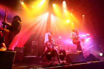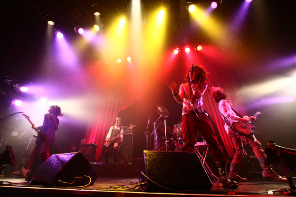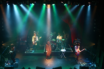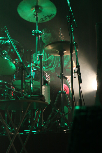 ステージ中央に置かれた楽器を一人ずつ手に取り、徐々に演奏が加わってゆくセッション風の荘重なオープニングを経て、「element of soul」で、ライブは重々しくダークな序章となった。水を打ったような緊張感が張り巡らされ、オーディエンスの集中力を一瞬でステージに引き込む。彼らのライブはまるでオーケストラやオペラといったクラシック音楽のコンサートのようだ。各曲間は楽章であり、拍手や喝采はマナー違反とばかりに、それぞれが余韻に浸り、静かに次の楽章を待つ。曲のテンションにかかわらず耳目を釘付けにされ、ステージの激しいアクションに対しレスポンスを返そうにも、つい見とれて“ノる”ことをためらうほどではないだろうか。どちらが意図するわけでもなく、ライブは鑑賞型のものとして自然と形成されてゆくようだ。