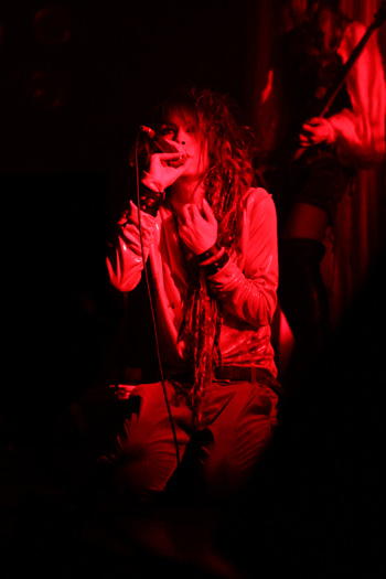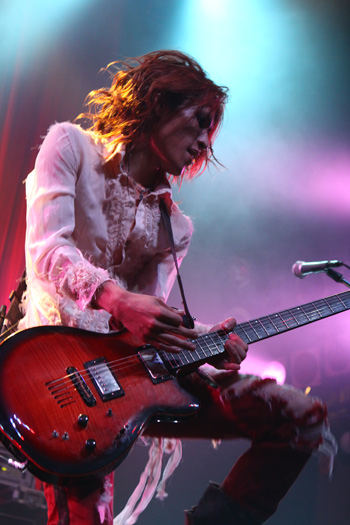 その理由の最たるは、手鞠の儚げで危うい美しさにある。彼の“主”に対してであろうか、時折宙を仰ぎ、語り、祈り、救いを求めるかのような仕草は魅了の一言に尽きる。シアトリカルに、楽曲の緩急、歌詞そのものを表現する姿は、バンドの精神性の主体たるフロントマンとして見事なまでであった。反面、あの華奢な肢体からは想像もつかない声量は、ライブを観て改めて驚嘆する。オフ・マイクでの慟哭には身震いを禁じえない。他のメンバーも持ち前のプレイアビリティを惜しみなく発揮し、ポテンシャルの高さをまざまざと魅せつける。特に印象的だったのは、wayne(G)のコーラスワークだ。核となるメロディを際立たせた存在感は圧倒的である。