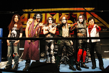 3曲目の「マジンガー・メドレー」の途中では、そのオリジナル・シンガーでもありアニメタルUSAの応援団長に就任した水木一郎のアニキがサプライズ・ゲストとして登場し「マジンガー・メドレー」を共演。当然ながら会場の熱気は瞬間沸騰だ。世界にアニソンを広げる同志の応援にかけつけた水木一郎から「アニソンは世界共通言語だーゼット!」というありがたいコメントとともに“Z”インターナショナル王座のベルトが手渡され、アニメタルUSA、マーティ・フリードマン、水木一郎の三者によるタッグ結成が、ステージ上で実現することとなった。