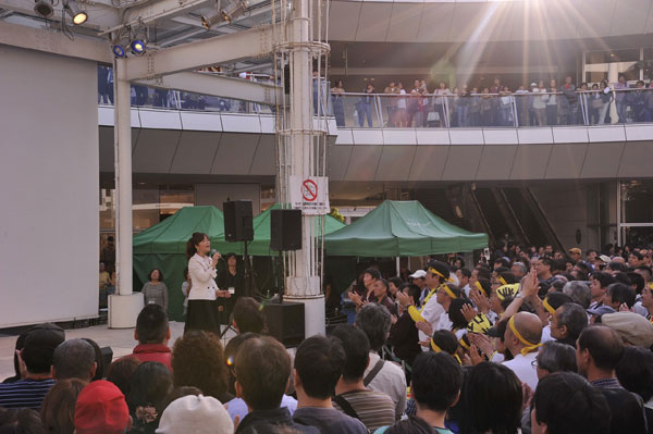 さらにこの日は、ステージ前に集まった約2000人の観衆の中に、かつて親衛隊と呼ばれたファンの姿も。黄色いハチマキと応援幕を掲げ、「ロマンス」のイントロが流れると「宏美ちゃーん!!!」と一斉に掛け声をあげ、デビュー当時と変わらない熱い声援を送っていた。