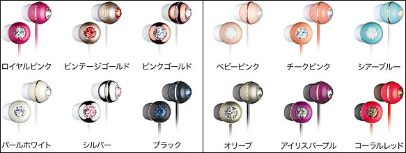 日立マクセルは、大粒のスワロフスキー・エレメントをあしらった女性向けイヤフォン「HP-CN15シリーズ」を10月25日に発売した。「ロイヤルピンク」や「ピンクゴールド」など、女性に人気のピンクを中心に12色をラインアップ。価格はオープンプライスで、店頭では各2000円前後になる見込みだ。