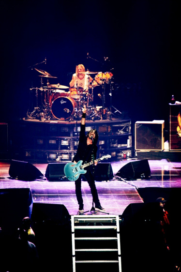 そんな彼らの、直近のライヴ・コンサート:10月13日に1万8千人を収容するスタジアム「フォーラム」にて行われたロサンゼルス公演も、ステージ真後ろまで客席を解放するほどの盛況となった。ステージ中央から前方に長く延びたランウェイ、そして後方へも頻繁に移動しながら、ファンとの距離を縮めるデイヴは勢い余って二度も転倒、そしてアンコールでは「ロング・ロード・トゥ・ルイン」や「ベスト・オブ・ユー」をソロで弾き語る等、ロック度120%、全力投球のステージをみせた。
