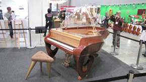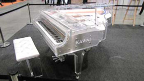 ▲「Yoshiki使用モデル クリスタルグランドピアノ」はYoshiki使用モデルと同型のCR-40N。外装に透明アクリル樹脂を使用したクリスタルグランドピアノだ。提供は河合楽器製作所。