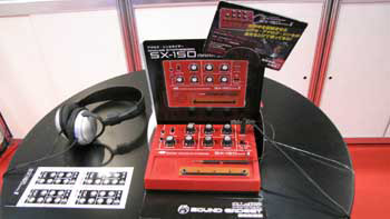 SX-150MARKIIは、会場内のアウトレットモールで購入することが可能。また、ブース内には特別展示として、SX-150MARKIIの開発者が手がけた改造モデルやMIDIインターフェースなども展示されている。同じく学研のブースには開発中の電子楽器「UDAR(ウダー)」の試作モデルも展示。円柱にらせん状に巻かれたロープを指で押して演奏するというかなり変わった楽器だ。発売時期は未定とのこと。
