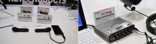TASCAMブランドのレコーダーを中心に展開するティアックのブース。各種レコーダーに加え、iPhone/iPad向けのアクセサリが注目を集めている。