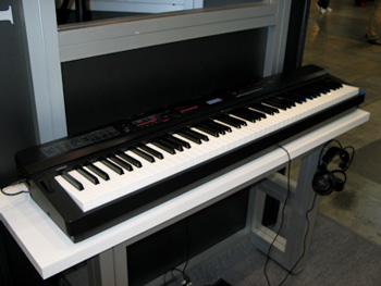 Priviaシリーズで試奏する人が多かったのは、この11月に発売となるPX-3S BK。ハイアマチュアのステージやレコーディングでの使用を前提とした本格的な“ステージピアノ”だ。リーズナブルな価格帯(予想実売価格8万円前後)の電子ピアノでありながら、スピーカーがついていないところも、一般的な家庭用電子ピアノとはちょっと違うという主張のようだ。88鍵のキーボードは4つまでのエリアに分割して、別のMIDIキーボードや音源をコントロールできる。ステージでたくさんのキーボードを使うプレイヤーのマザーキーボードとして多彩な音を鳴らせそうだ。