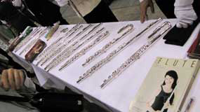 このほか、未経験者限定の「アコギ弾き語り体験~90分で1曲完奏 in 楽器フェア」(5日、Webでの事前申込みが必要)や、オカリナ普及協会によるミニコンサート、展示・試奏が行われる「オカリナ仲間あつまれ!」(3日~6日)、村松フルート製作所、三響フルート製作所、ミヤザワフルート製作所、パール楽器製造、アルタス、ヤマハの6社のフルート演奏が体験できる国内フルートメーカー共同ブース(写真、3日~6日)など幅広いジャンルのイベント、展示が行われている。