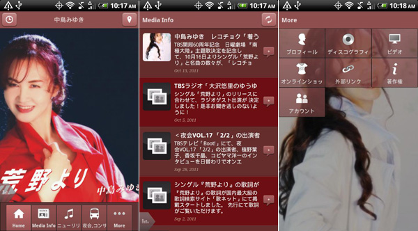 このアプリでは中島みゆきの最新ニュース・動画はもちろん、これまでのリリース作品やライブ情報など、様々な情報が集約されており、中島みゆきのファンにとって必携のアイテムとなりそうだ。アプリのダウンロードは無料。
