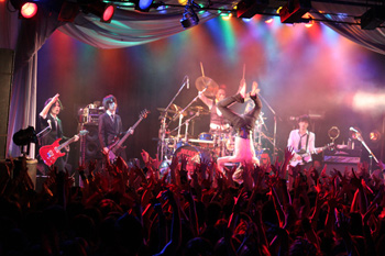 MERRYの誕生10周年を記念しての6夜公演、<MERRY 10th Anniversary NEW LEGEND OF HIGH COLOR「6 DAYS」>が東京・恵比寿リキッドルームで開幕し、11月8日はその第2夜、すなわち2004年発表のインディーズ第2作『モダンギャルド』を主題とするライヴが行なわれた。昨日と同様、詳細にわたる記述は避けておくが、すべての演奏を終了したのち、ステージを去る間際にネロ(Dr)が客席に投げ掛けていた言葉が、この夜のライヴがいかに素晴らしいものだったかを物語っている。