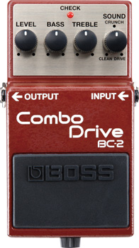 BC-2は、Combo Drive(コンボ・ドライブ)と名付けられた歪み系のエフェクター。製品名の“BC”からもわかるように、ブリティッシュ・コンボ・アンプのサウンドの再現を狙ったもので、60年代から現在まで多彩なジャンルで使われ続けている定番中の定番、VOXのAC30のサウンドが再現できる。60年代リバプール・サウンドに代表されるあのサウンドを手持ちのアンプで出せるとなれば、食指が動いてしまう読者も多いだろう。